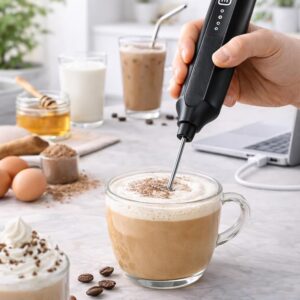 Rechargeable Milk Frother – 3 Speeds & Stainless Steel Whisk (Cream)