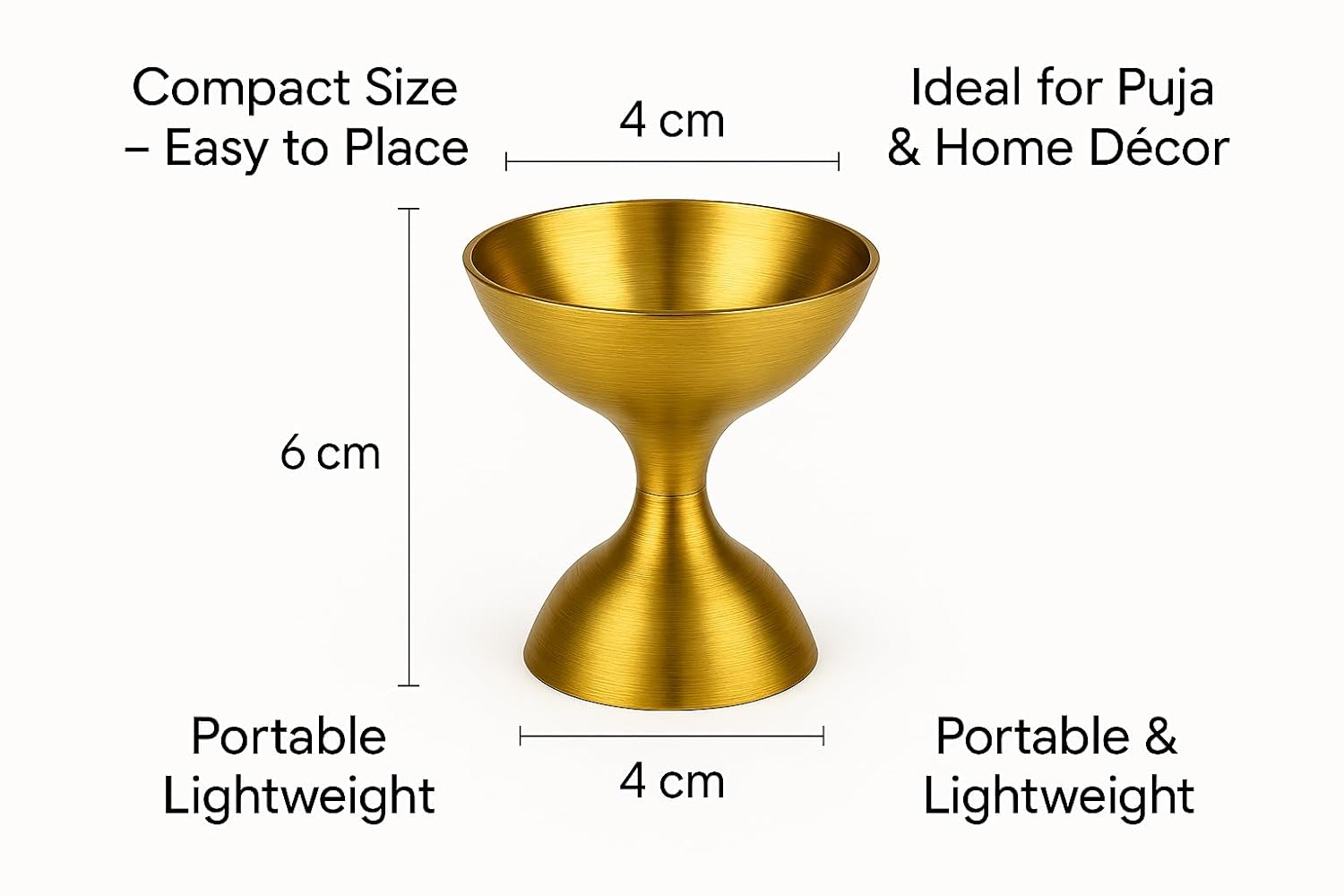 Wide Base: Prevents tipping or spilling of oil, ghee, or incense.