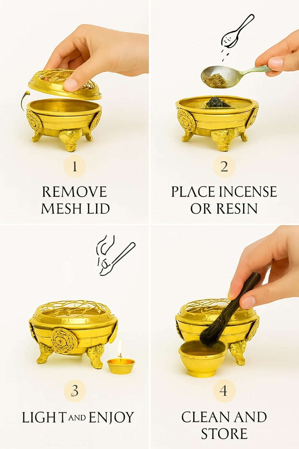 Unlike ordinary incense holders, this burner offers controlled burning, safety, and traditional elegance. Its brass build, mesh cover design, and versatile usage make it ideal for both spiritual rituals and everyday relaxation.
