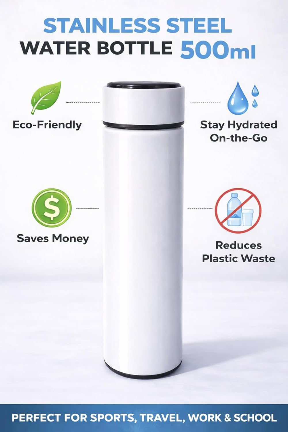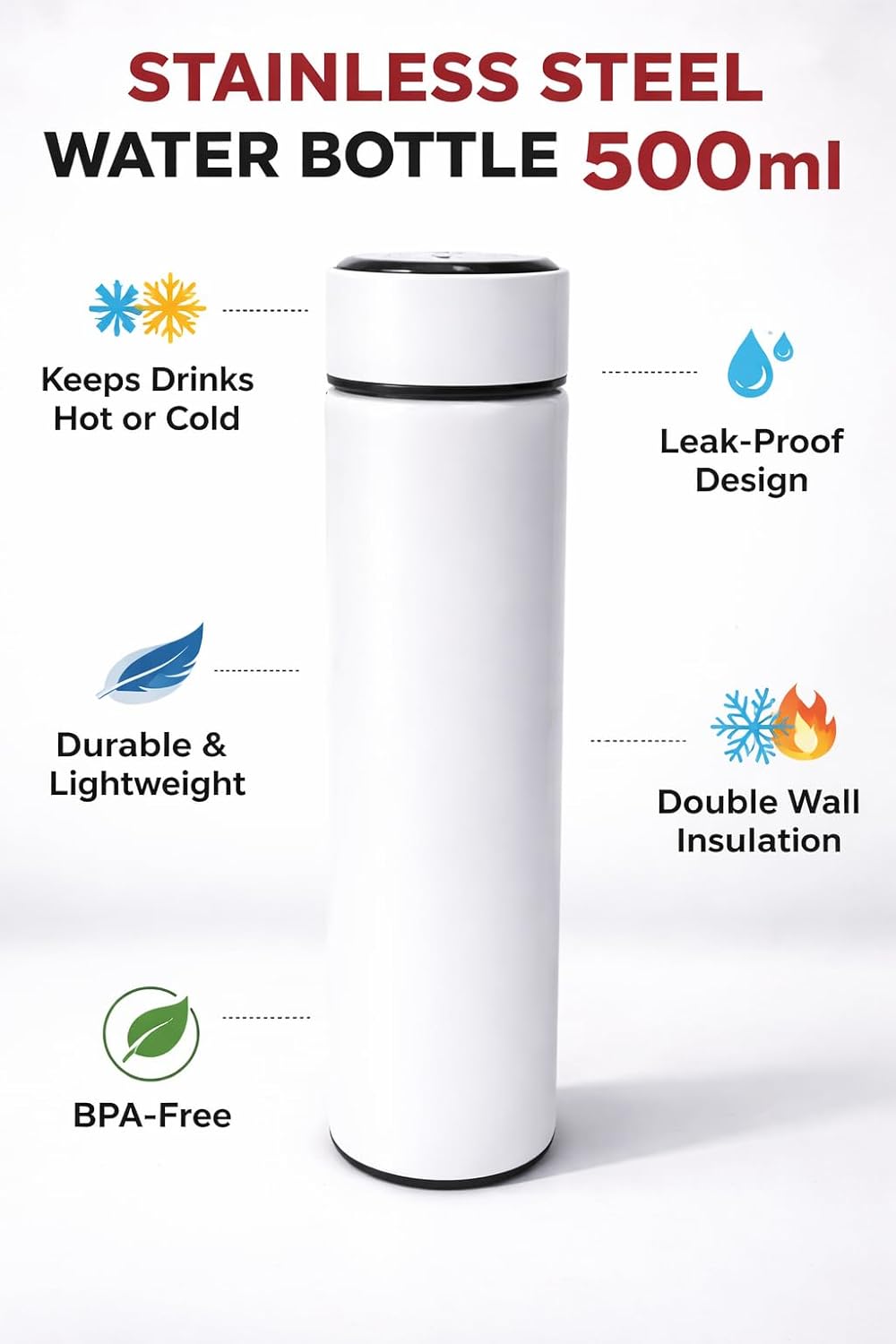 Whether you’re carrying hot coffee during your commute or chilled water for workouts, this bottle maintains the perfect temperature for hours. Its premium stainless steel body ensures durability while preserving the natural taste of your beverages.