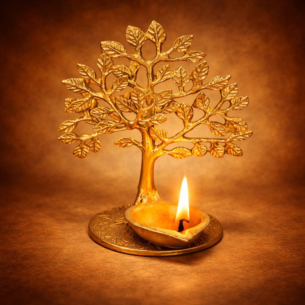 The Tree of Life symbolizes growth, balance, prosperity, and connection between nature and spirituality. When combined with the glow of a diya or candle, it represents enlightenment, positivity, and divine energy flowing through the home.