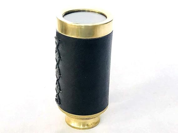 The Vintage Brass Spyglass Telescope blends nautical charm with practical design. Featuring a black leather grip and clear optics, this 6-inch pocket scope is ideal for collectors, explorers, and elegant décor.