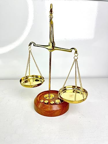 The Vintage Brass Weighing Scale Showpiece is more than just décor—it’s a classic symbol of fairness, justice, and balance. Handcrafted with precision in polished brass and mounted on a solid wooden base, this tarazu (balance scale) is a striking centerpiece for homes, offices, libraries, and law chambers.