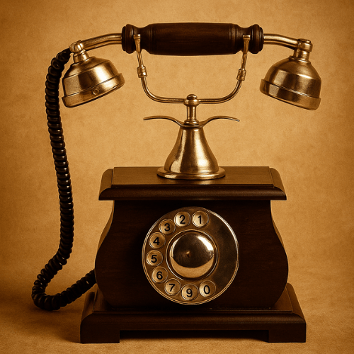 Timeless Vintage Elegance: Add a touch of classic sophistication to your space with this Vintage-Style Black & Nickel Showpiece Telephone. Crafted with a dark wooden base and polished nickel accents, it replicates the charm of traditional landline phones.