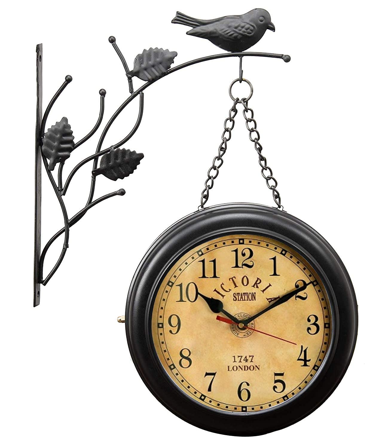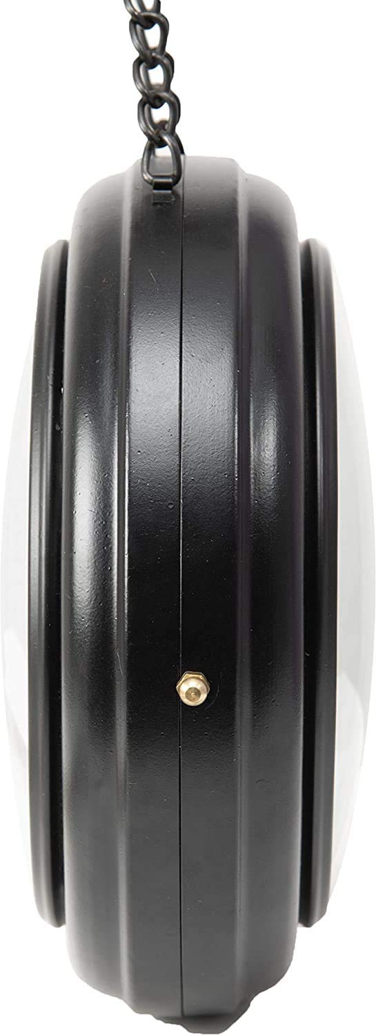 Crafted from high-quality metal, the Vintage Double Sided Station Clock is built for durability and long-lasting decorative appeal. The sturdy hanging bracket and chain provide secure wall mounting while adding to the old-world aesthetic.