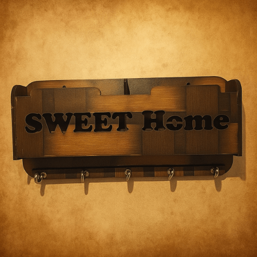 🎨 Features rustic “KEY HOUSE” cutout design